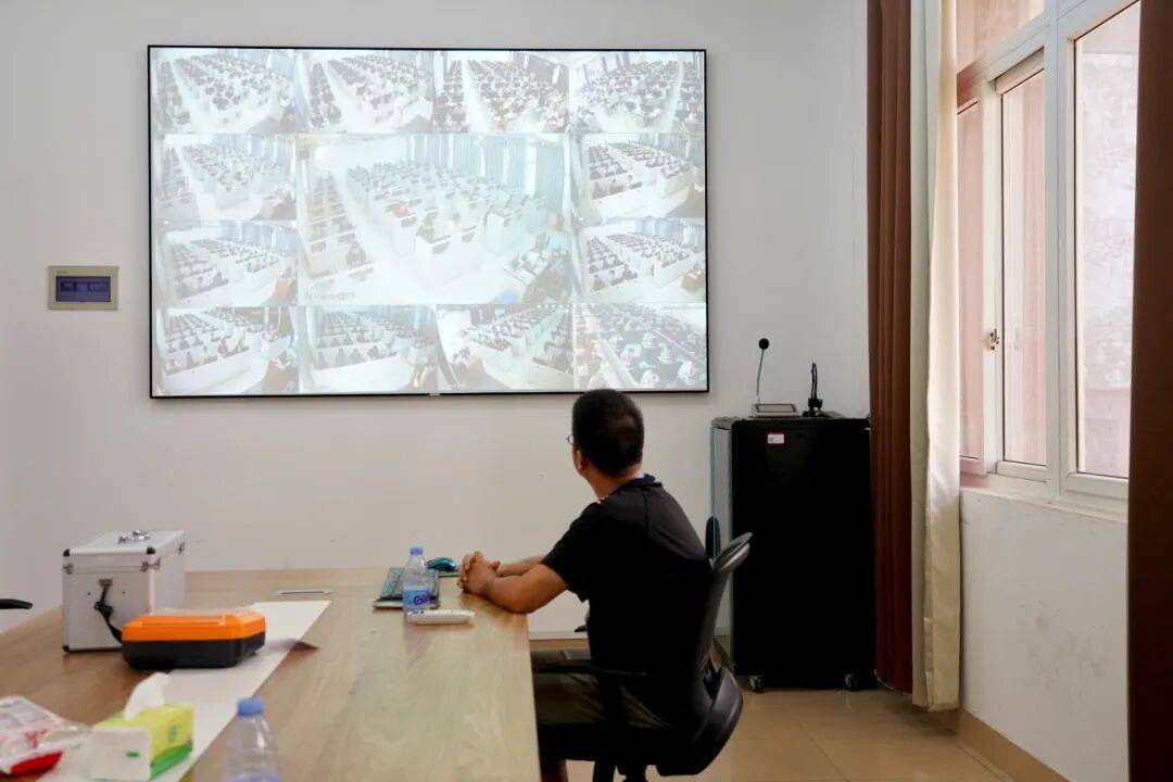 在考生们奋笔疾书时,有一群人始终默默坚守。照片中,监考老师来回踱步的身影、保密人员护送试卷的严肃神情、技术人员紧盯监控屏幕的专注目光,共同织就了考试平稳运行的坚实后盾。这场考试的圆满,属于每一位全力以赴的参与者。