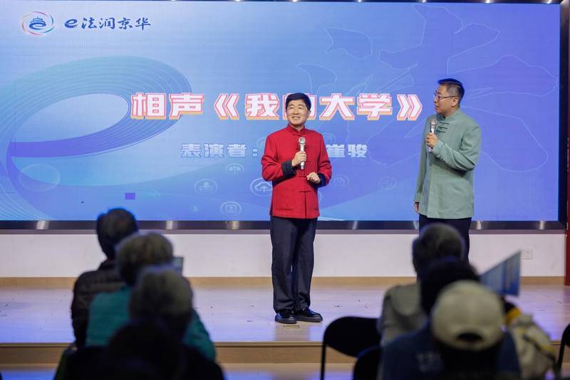 身穿数字化深蓝“校服”,“入学”即可享受统一免费理发服务,“考试成绩”由多位老师共同评定,你能猜出这是哪所“大学”吗?10月11日,“西狮普法进万家”西城区网络普法系列活动举行,由中国煤矿文工团两位相声演员带来的《我的大学》,以诙谐幽默的方式,将维护网络“净土”的理念融入欢声笑语,让法治精神在轻松氛围中传遍街巷胡同。