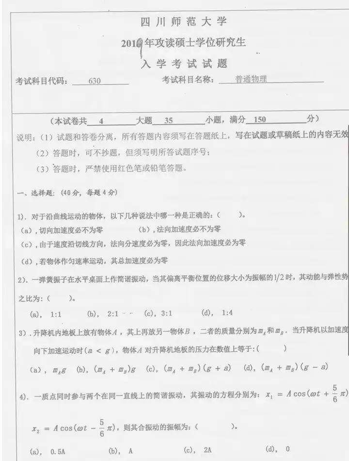 2026四川师范大学物理学考研... 川师大物理与电子工程学院: 070200物理学 *A-历年考研真题试卷* 2012-2019年四川...