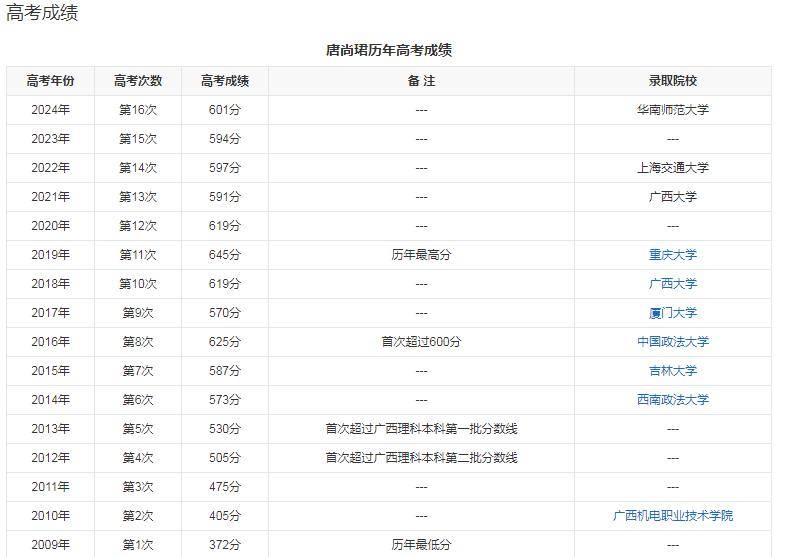2024年9月1日,随着全国新生报到的热潮,华南师范大学迎来了一位特别的学生——唐尚珺。他是那位已经参加了16次高考,才终于考上大学的35岁男子。凭借广西理科601分的成绩,唐尚珺被华南师范大学信息工程专业录取,成为该校史上年纪最大的本科生。