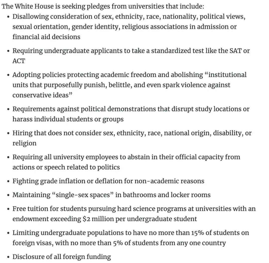10月1日,特朗普政府向部分顶级大学发布了备忘录,提出了一项名为“学术卓越契约”(Compact for Academic Excellence in Higher Education)的新提案。