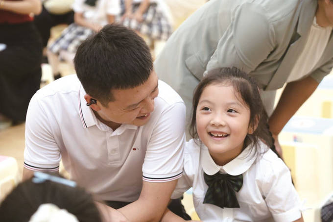 全体新生高唱校歌,嘹亮童声激荡场馆。随后,家长牵着孩子走过红毯铺就的“成长之路”,道路两侧是全体老师的微笑和祝福。这一步,象征着孩子们正式开始了小学的学习生活。