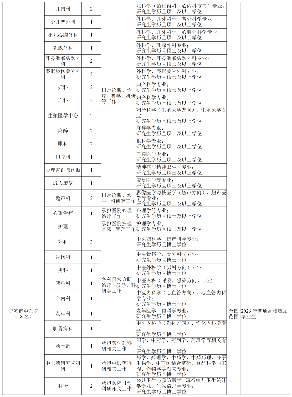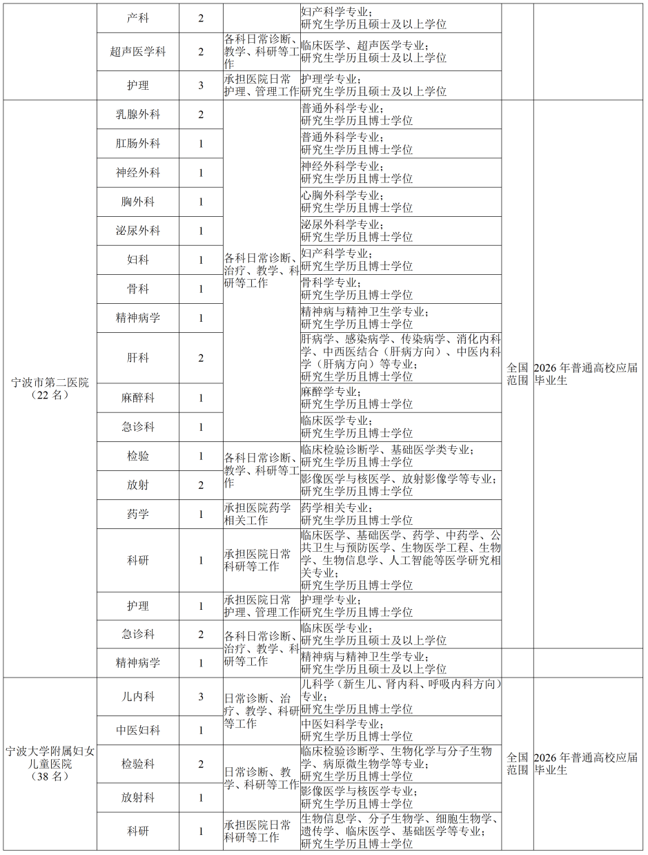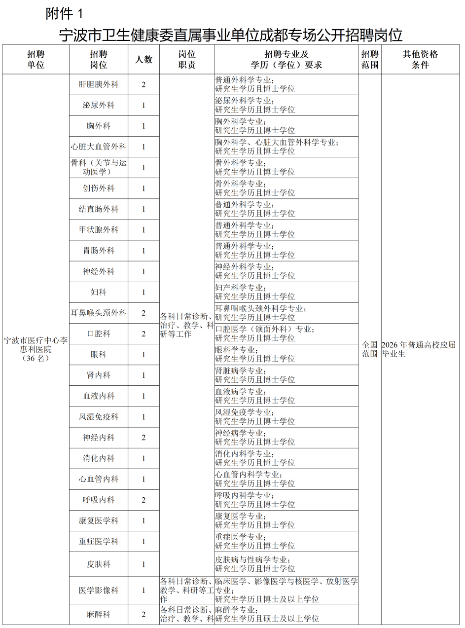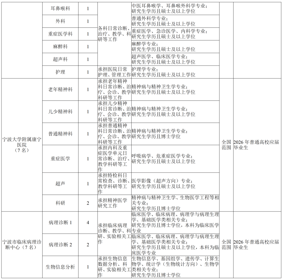 2.除面向2026年普通高等院校应届毕业生的岗位外,其他岗位要求的学历(学位)、职称、执业资格、上岗合格证书、规培合格证书取得时间和年龄、工作经历计算截止时间均为公告发布之日。