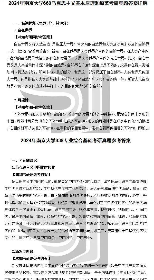 2020-2025年南京大学660马克思主义基本原理和原著考研真题参考答案【回忆版】