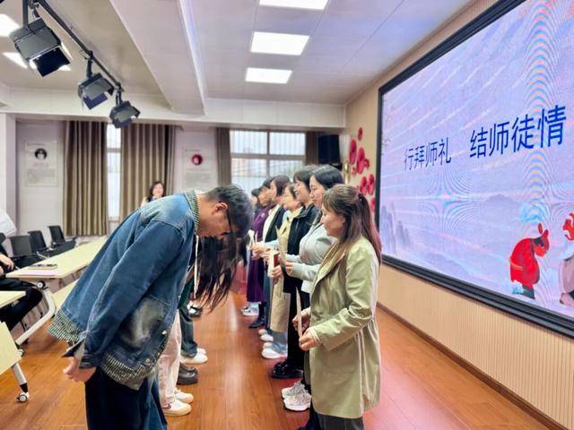 活动伊始,学校副书记贺旭辉宣读了本学年“青蓝结对”新教师提升型师徒名单,正式拉开了青蓝同行、携手启航的序幕。拜师礼环节庄重而温馨。青年教师们怀揣着对教育事业的无限热忱与对成长的迫切渴望,向各自的指导教师行抱拳拜师礼。这一传统而郑重的礼节,不仅表达了徒弟对师傅的深深敬意与仰慕,更缔结下深厚真挚的师徒情谊,象征着教育薪火的代代相传。