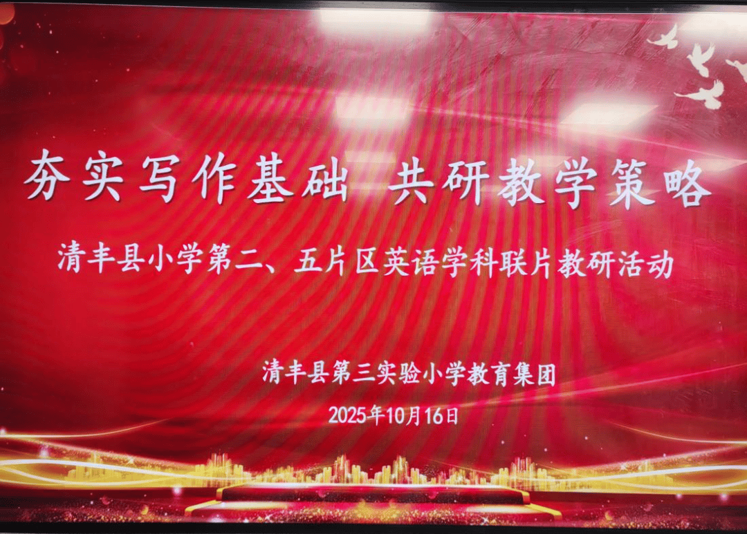 秋意渐浓,教研深耕。在这收获与希望并蓄的季节,为深入践行新课标理念,聚焦英语学科核心素养,共同探索小学英语写作教学的有效路径,10月16日,清丰县小学第二、五片区英语学科教师齐聚清丰县第三实验小学,成功举办了以“夯实写作基础 共研教学策略”为主题的联片教研活动。