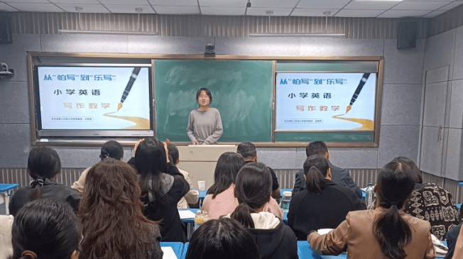 幸福路校区边晓雨老师呈现了一场内容翔实的写作专题讲座。她融合理论阐释与具体实例,系统梳理了新课标背景下小学英语写作教学的核心策略与实践路径,为教师后续教学实践奠定了理论基础并提供了方法指导。