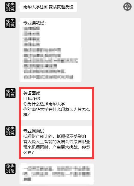 1位英语面试导师,英文自我介绍,导师追问。专业课4位专业课面试导师,20分钟面试时间,科目:刑法、民法