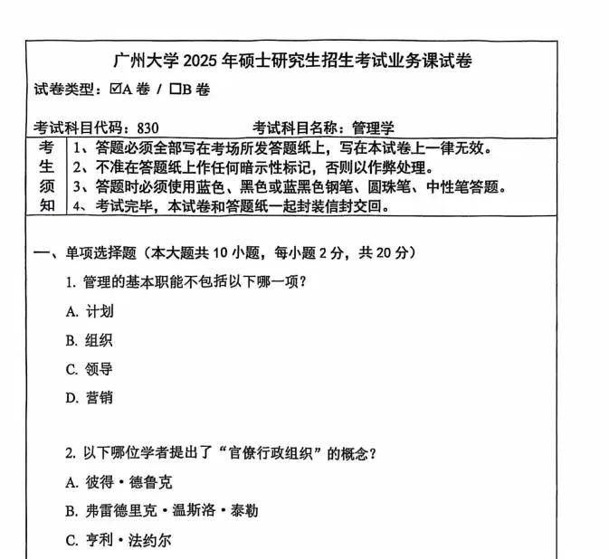 [101]思想政治理论;[201]英语(一);[303]数学(三);[830]管理学;
