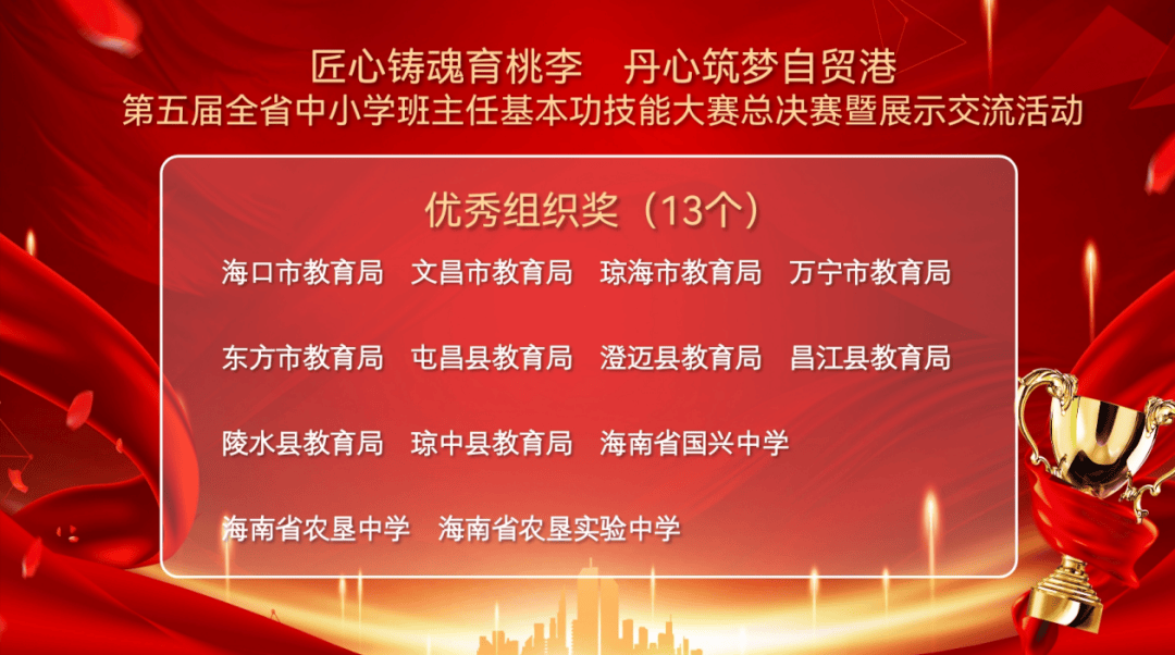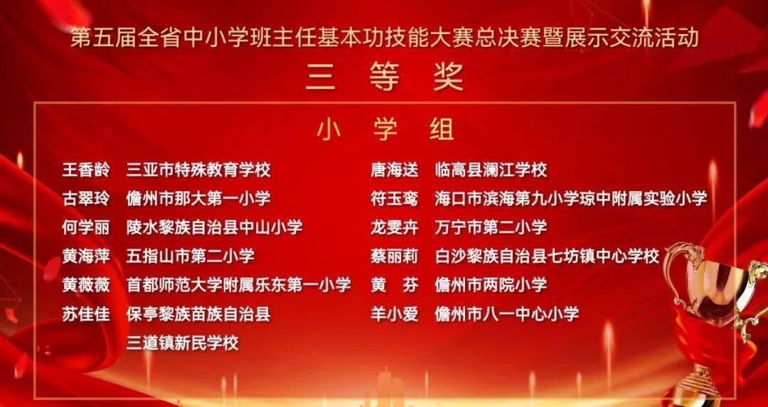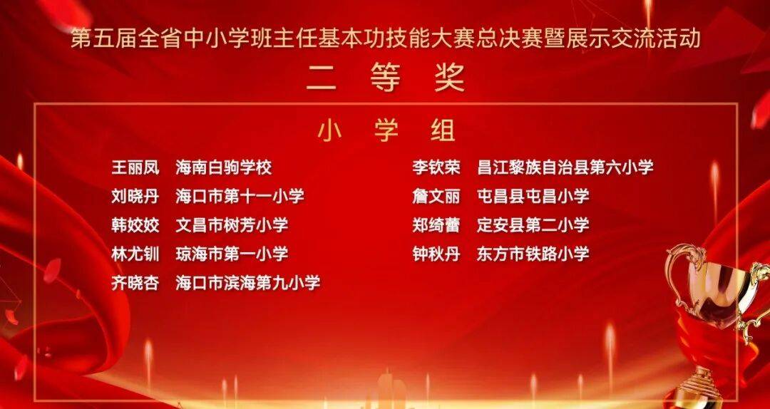 省教育厅党组成员、副厅长陈振华出席活动并为获奖选手及单位颁奖。获得各学段一等奖的选手将代表海南参加年底举行的第三届全国中小学班主任基本功展示交流活动。