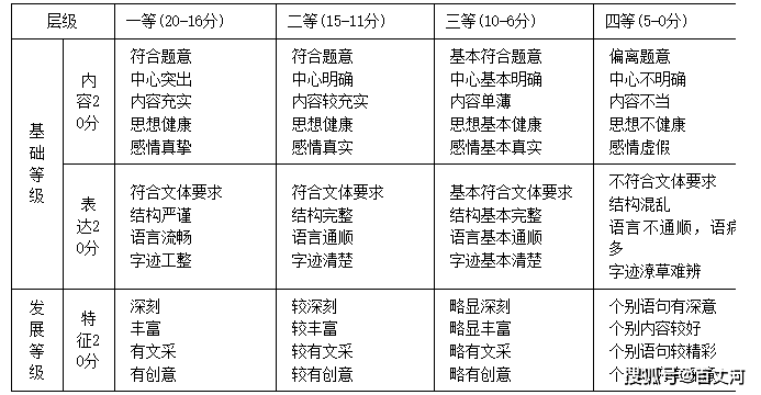 (2)作文等级评分标准