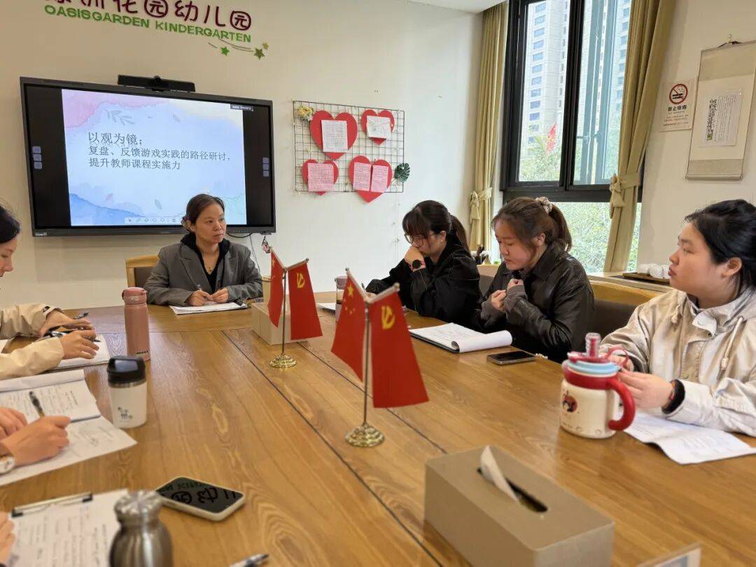 此次研讨,集团副园长许老师对本次观摩研讨活动进行了总结与点评。以一系列先进理论为支撑,从推进、深挖、循证三个维度发力,为幼儿游戏教育搭建起科学、精准且高效的发展框架。