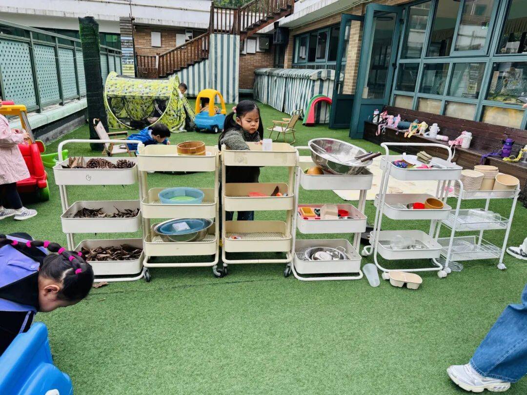 游戏开始后,教师们化身“专业观察者”,手持游戏观察表,轻步走进户外游戏场地。以“同行者”的姿态,默默见证着幼儿们充满自主与探索精神的欢乐时光。