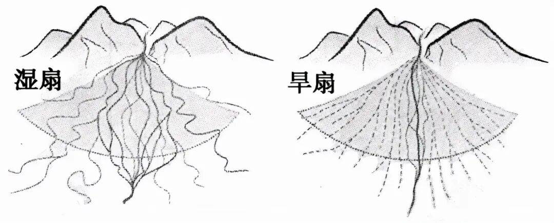 3.洪积物:由暂时性洪流(如山洪)在山前或山谷出口处堆积形成的扇形堆积体(洪积扇)。