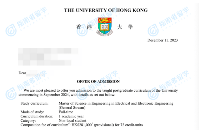 雅思出分后,我在 10 月 20 日正式递交了港校及南洋理工的申请。等待 offer 的日子格外漫长,每天打开邮箱成了习惯,看到身边有同学陆续收到 offer,而我的邮箱始终安静,焦虑感也随之加剧。直到 12 月 12 日凌晨,我在校外出租房准备去实习时,突然收到了邮箱通知 —— 打开一看,竟是香港大学电气与电子工程(工程)理学硕士的录取通知!
