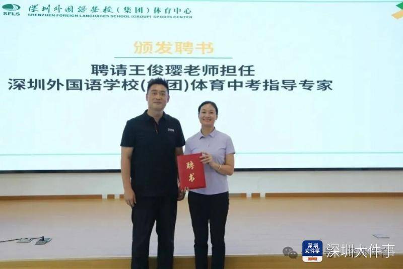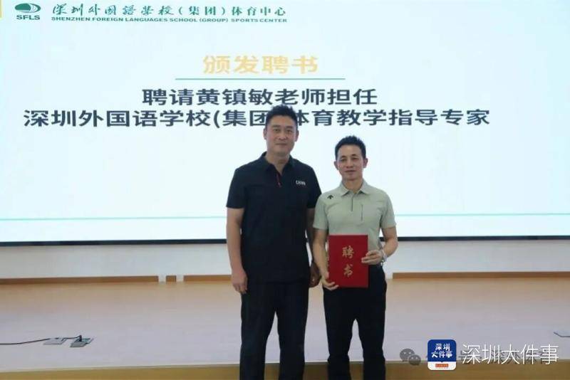 会议期间,深圳外国语学校(集团)体育中心主任杨帆代表学校向黄镇敏、王俊璎颁发聘书,特聘其分别为深圳外国语学校(集团)体育教学指导专家和体育中考指导专家。