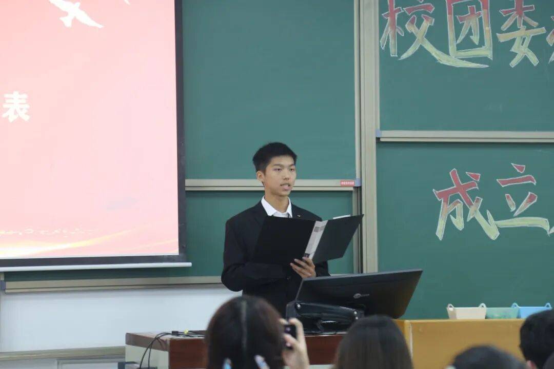 作为文书部部长,黄子浩代表全体部长致谢指导老师与兄弟组织,欢迎新部委加入,提及校团委“党有号召,团有行动”的传统。