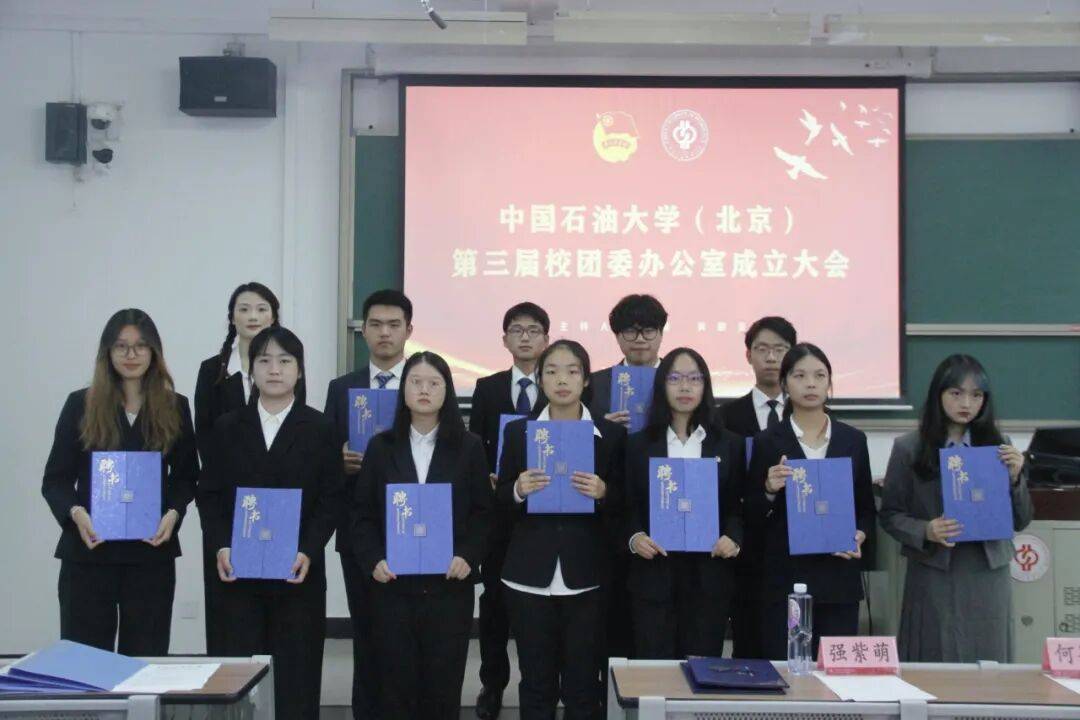 2025年10月23日下午,中国石油大学(北京)第三届校团委办公室成立大会于三教103召开。校团委办公室主任、指导老师王栋,校团委“两会三部六中心”代表,校团委办公室副主任强紫萌、何颖华、闵泽涛、马子豪,校团委办公室前主席团成员及新一届成员集聚一堂,共同见证校团委办公室发展历程中的重要节点,一同为这份承载着责任与使命的工作注入新活力,携手开启办公室服务师生、助力校园发展的崭新篇章。