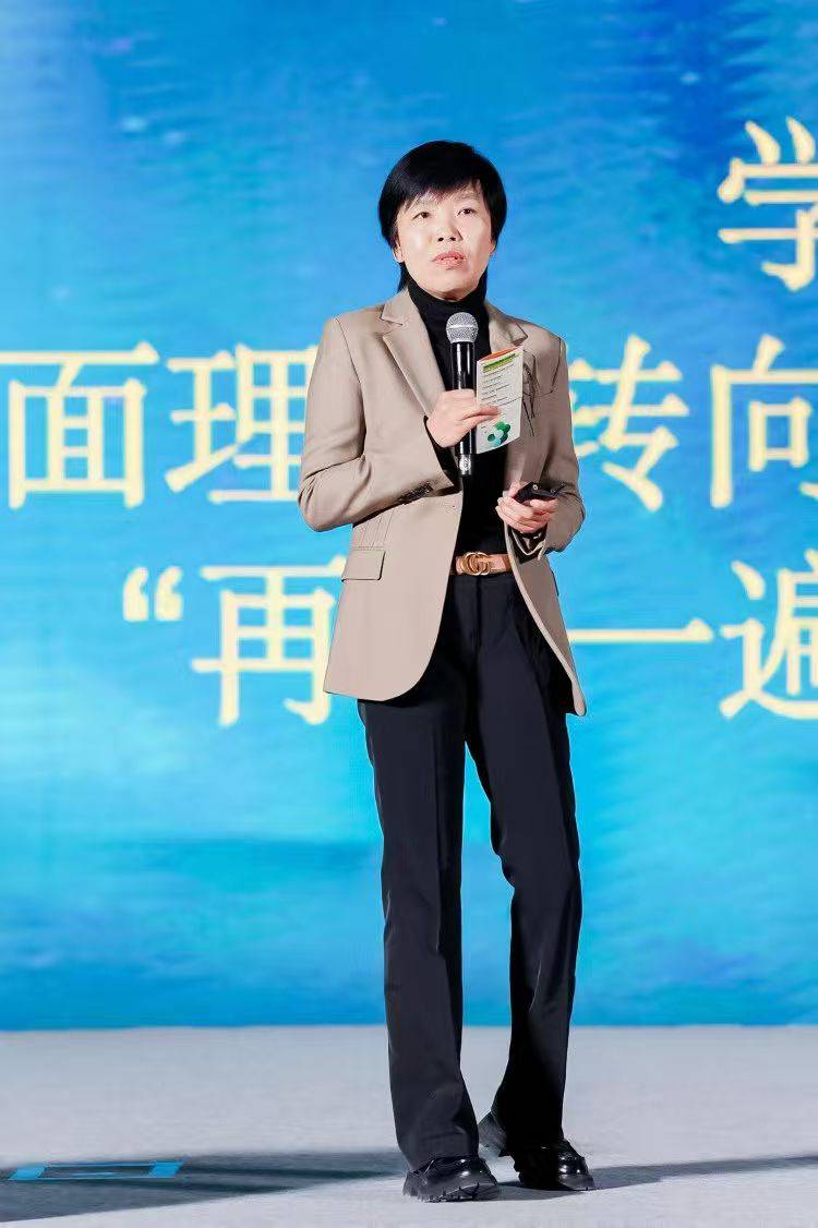 北京市十一学校龙樾实验中学校长王海霞在年会现场做分享。 主办方供图