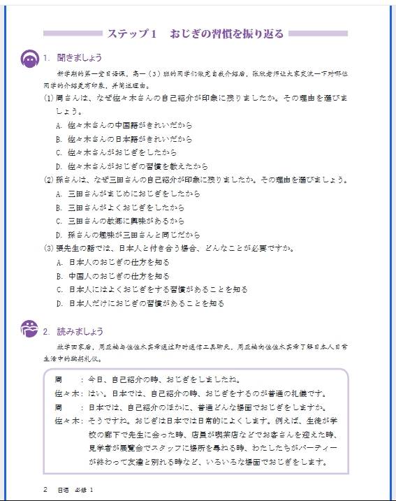 人教版高中日语必修(第一册)新教材电子课本在线阅读(此为截图版,获取是高清版)