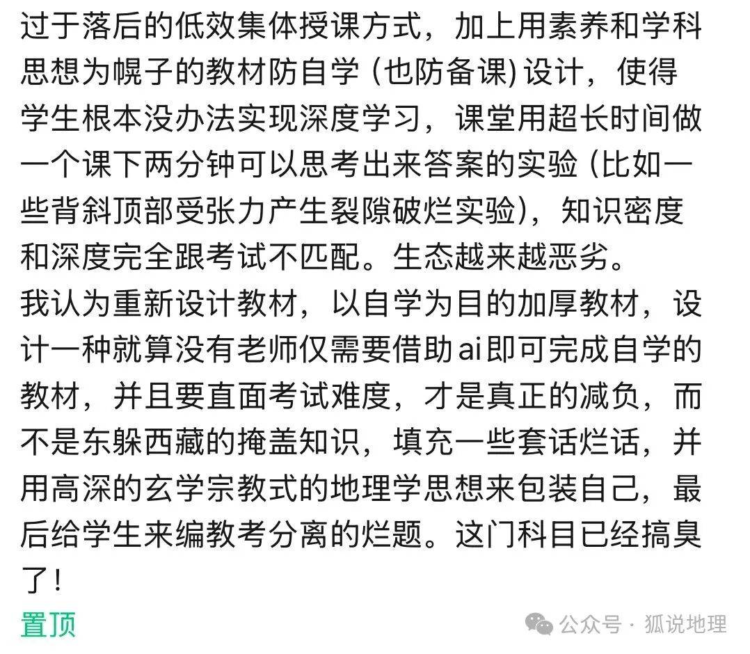 真是服了,本来十分有趣的学科(看星球研究所的公众号、美国国家地理、英国BBC,这些节目里的地理多有意思)被出题人整成越教越恶心、老师们一做题就想骂娘的科目。这些出题砖家的危害有多大?