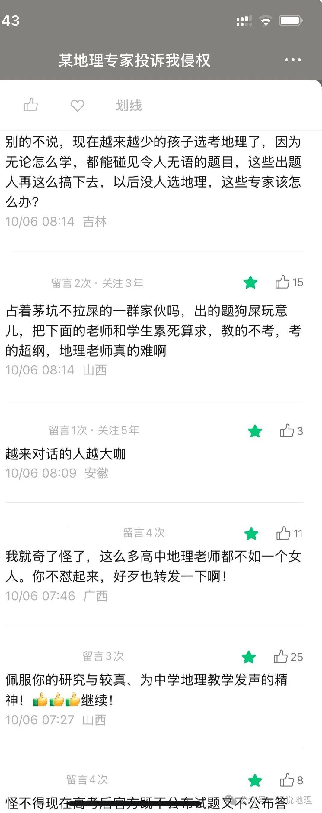 每每看到这些精彩的留言,就感慨有很多有才华老师其实早就看清楚了这些“专家”的嘴脸。且看专家们年复一年的全国讲座上表演,向大家展示他们科学的地理专业知识。