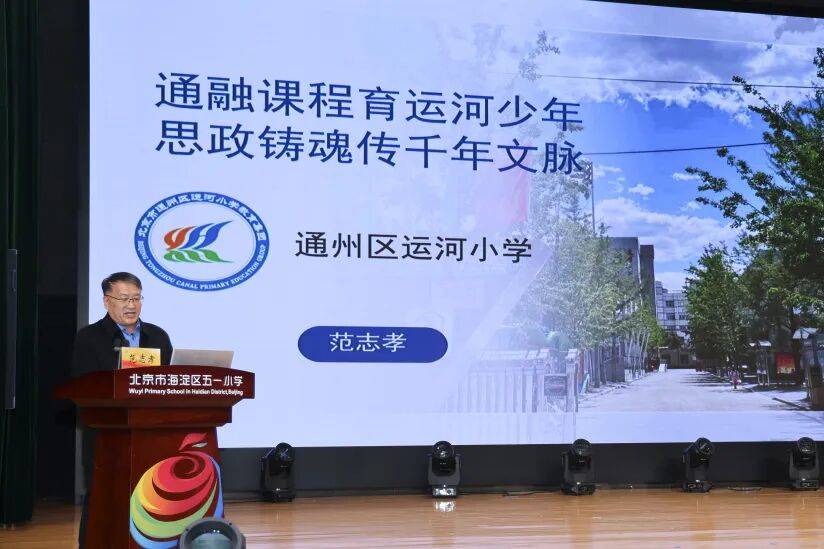 通州区运河小学校长范志孝分享了该校“五个一”通融课程体系的建设经验,将运河精神融入课程,共拓首都课程改革的深度与广度。