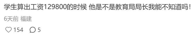 老师改作业的时候发现学生在应用题算出来老师一个月的工资是129800元。