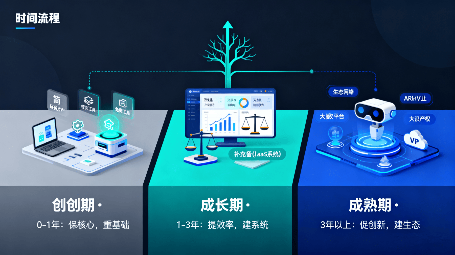 成熟期(3年以上):塑品牌,促创新,建生态。