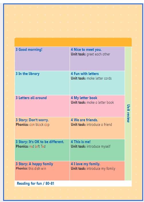 - 学习任务方面:在新版三年级英语教材的目录中,详细列出了每个板块的教学目标,学生的学习任务变得更加明确。每一单元开头,除了有贴近生活的主题外,还多了一个互动性更强、包括了点语法知识的标题,如旧版教材第一单元的主题为 “Hello!”(你好),现在则变成了 “Making friends”(交朋友),下面还新增了 “How do we make friends?”(如何交朋友)。