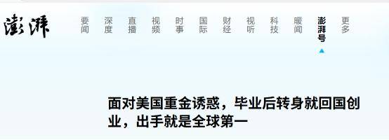 3·澎湃网-《面对美国重金诱惑,毕业后转身就回国创业,出手就是全球第一》