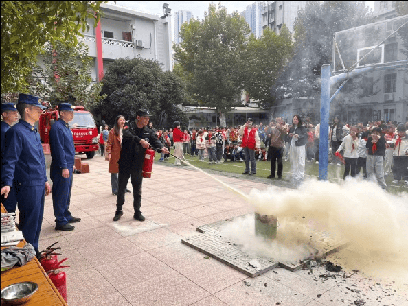 疏散演练结束后,现场教学环节同步开展。消防官兵通过通俗易懂的语言,向师生们宣讲了火灾预防、初期火灾扑救、火场逃生自救等核心消防知识,结合典型案例剖析火灾隐患危害。在实践操作区,消防官兵现场演示了灭火器“提、拔、握、压”的正确使用方法,演练火盆灭火技巧,邀请学生、教师代表亲身体验,学习基础消防器材实操技能。