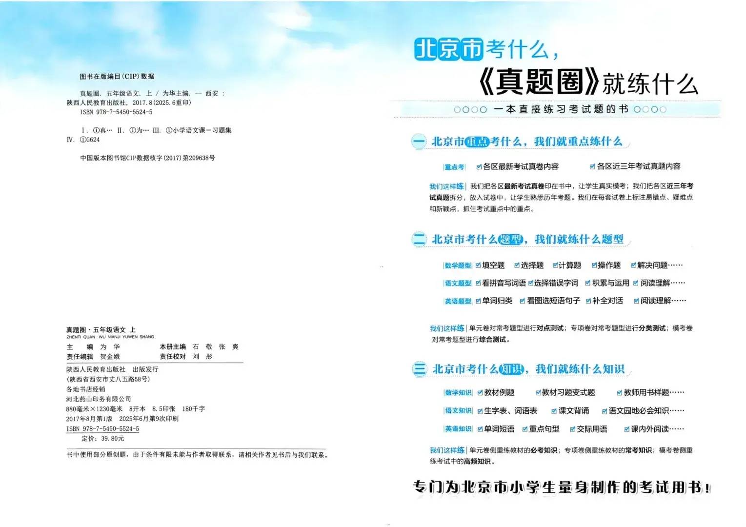 五年级是语文能力跃迁的关键期,这套真题卷把 “基础夯实 + 难点突破 + 应试提升” 完美结合。用它练习,娃不仅能扎实掌握课内知识,还能通过真题训练熟悉北京语文考试的出题规律,精准避坑、高效提分,语文综合素养和应试能力同步提升,成绩想不进步都难!