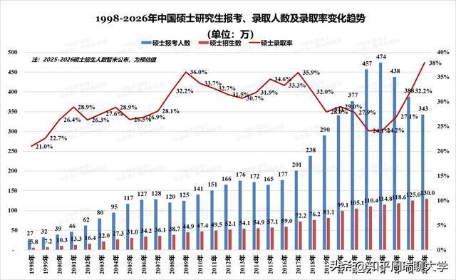 1998-2026 年的研招变迁,是中国高等教育从 “规模扩张” 到 “内涵发展” 的缩影。考研人数的涨跌、录取率的起伏,本质上是社会对 “学历价值” 认知的迭代。当考研从 “必选项” 变成 “可选项”,当考生从 “盲目跟风” 变成 “理性决策”,中国的研究生教育才算真正完成了 “去魅”—— 它不再是 “成功的捷径”,而是 “成长的阶梯”,只有那些真正热爱学术、明确职业方向的人,才能在这条路上走得坚定而长远。对于每个个体而言,考研与否、考哪里、学什么,最终都应回归 “自我价值实现” 的本质,这或许才是研招生态变革带给我们的最深层启示。