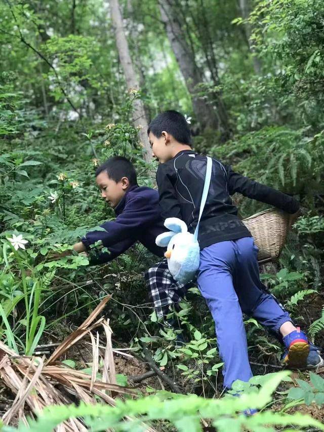 雨后,孩子们可以去漫山遍野地采摘蘑菇,去竹林里砍竹子回来自创竹艺。