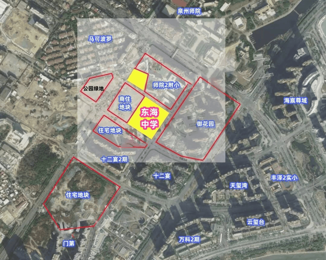 东海中学新校区:早在2020年,有东海海韵山居业主表示,小区旁边的地块已被市政府地划拨为学校用地。2023年,丰泽教育局回复在十四五教育项目建设规划中,安排东海中学新校区项目,该项目计划于2025年建设。2024年2月,泉州市丰泽区教育局作出详细回答:东海中学新校区、宝珊小学的建设已列入丰泽区“十四五”教育专项规划。