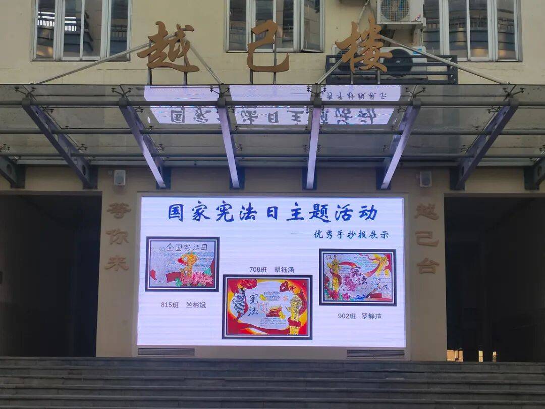 校园阵地处处可见“法治风景”。在第二初中教育集团,“越己台”上展示的宪法主题手抄报吸引师生驻足观看。第七小学教育集团银湾校区的学生们自制宪法书签、绘制专题黑板报。就连校园宣传栏也贴满了法治知识,让师生在日常路过时便能轻松学习、点滴积累。