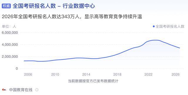 前几天,2026年研究生招生考试报名人数出炉,一共343万人。