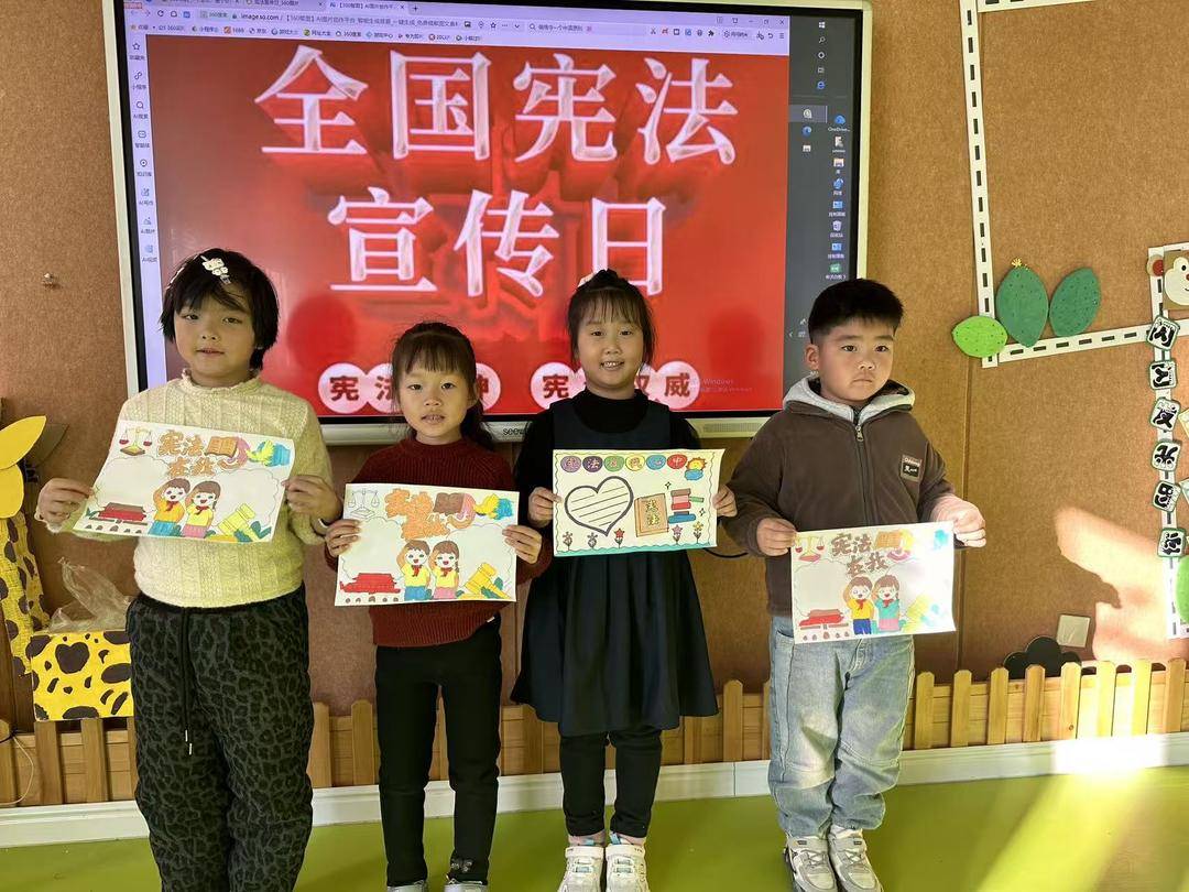 《中华人民共和国宪法》作为根本大法,是公民权利的保障书。老师们结合幼儿年龄特点设计多元活动:教师通过故事讲述、情景模拟等方式传授法律常识与自我保护知识,还组织亲子共观宪法宣传视频,让幼儿知晓法律的保障作用;孩子们拿起画笔,以独特视角将对宪法的理解绘入画作,定格心中法治模样;大班幼儿开展 “模拟小法庭” 辩论,直观感受宪法威严与司法公正;“你拍一,我拍一,宪法保护我和你……” 稚嫩的拍手歌声中,孩子们轻松牢记宪法核心意义。