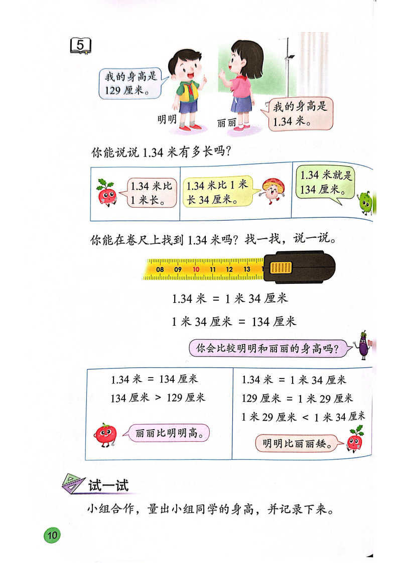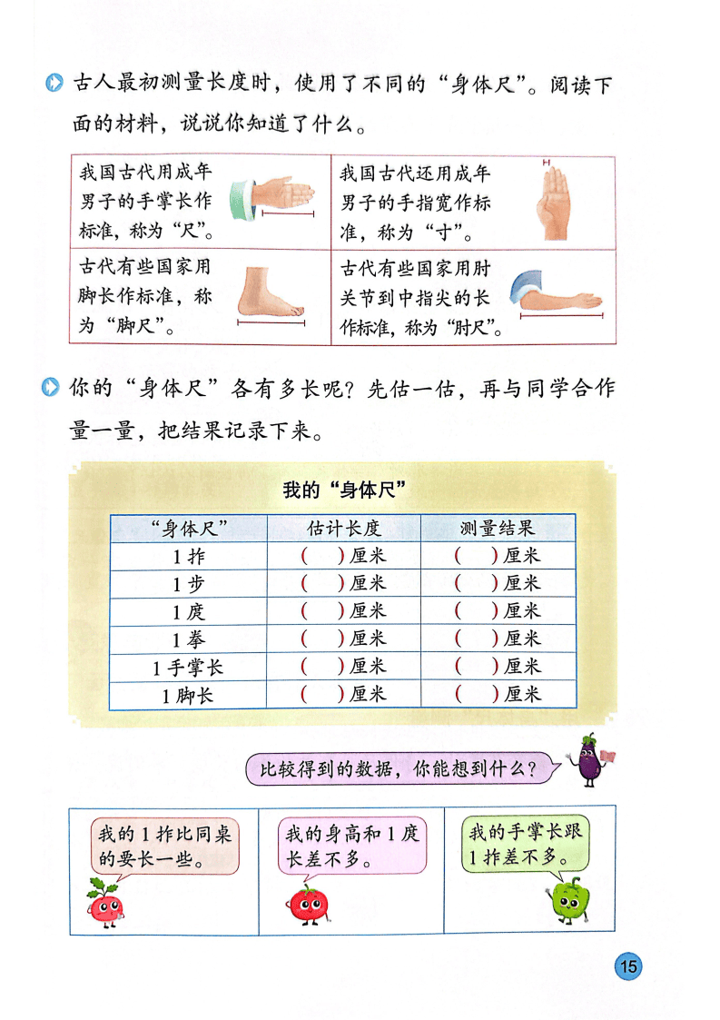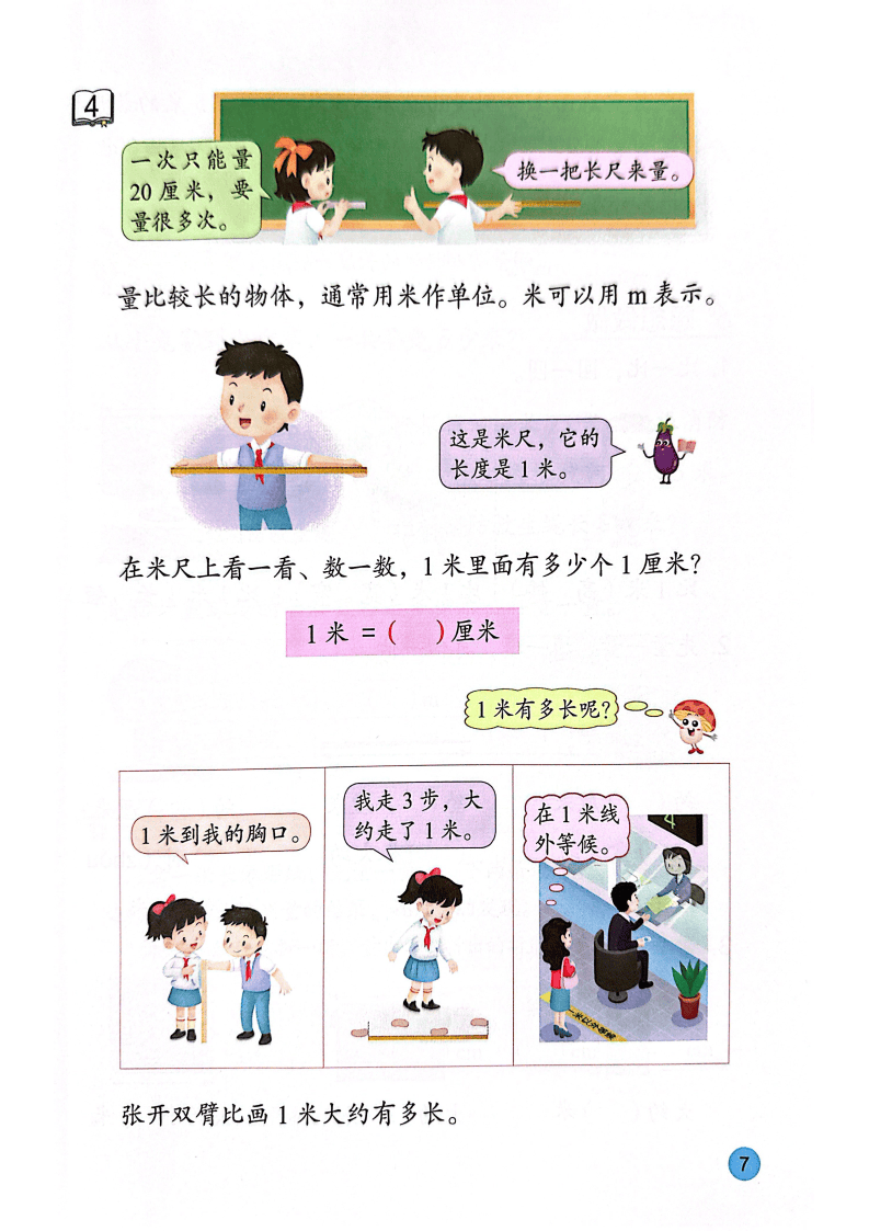 新教材的最大亮点的是 “具象化 + 生活化” 的编写思路,彻底告别枯燥刷题!用蜡笔比长度、用身体尺量课桌的实践活动,把抽象的单位概念变直观;“欢乐购物街”“时间有多长” 等场景化内容,将小数认知、时间计算融入日常;最后还专门设置 “一二年级知识整合” 章节,帮孩子系统梳理两年所学,形成完整知识网络。更贴心的是,教材通过矩形模型、计数器等直观工具辅助理解算理,乘法算式明确 “一份数在前、份数在后” 的规范,搭配梯度清晰的习题和趣味插画,既能巩固基础又能拓展思维,完美匹配二年级孩子从 “直观思维” 向 “逻辑思维” 过渡的关键期,让数学学习真正源于生活、用于生活!