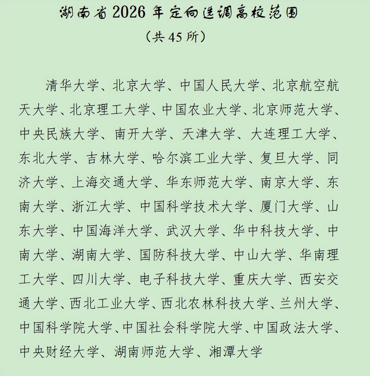 一方面,定向选调面向的学校基本是双一流大学,很多考生因为学校级别低而无缘报考。如湖南2026年度面向国内45所“双一流”建设高校:
