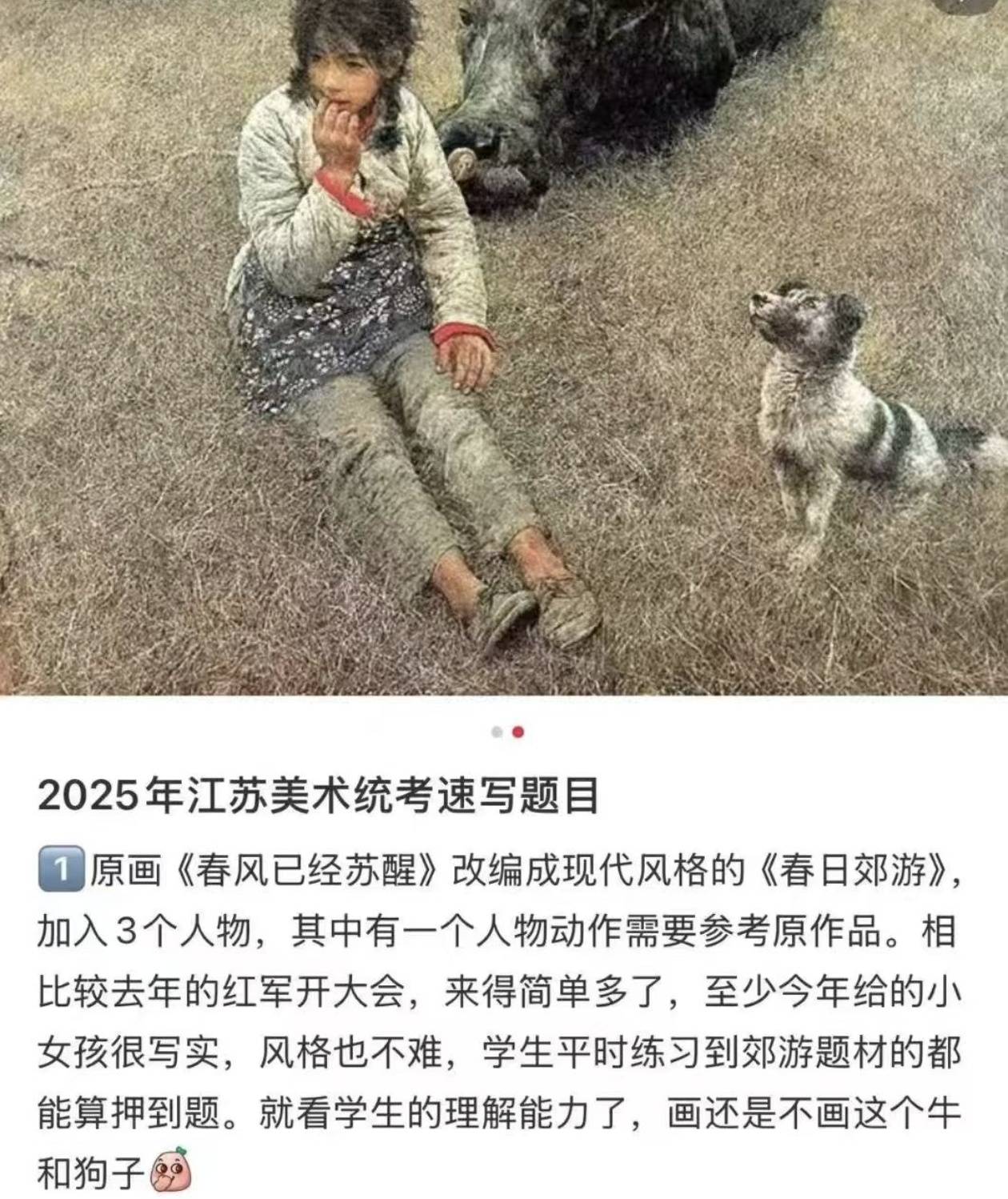 - 保持原画田野、水牛、狗等乡土意境,同时融入现代郊游氛围,考查构图、人物组合与快速塑造能力 。