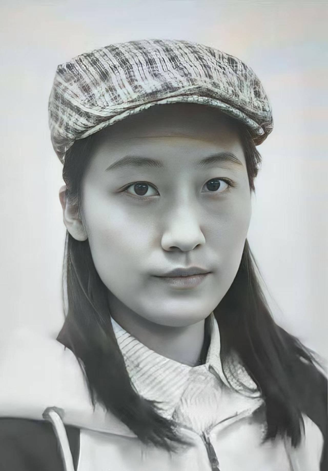 给出一张正面角度、戴格纹帽的女青年照片,光源自左上方斜射,要求考生重点刻画五官、帽子与头部的结构关系,并准确表现面部明暗与体积感 。