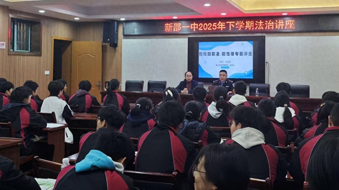 本网讯(通讯员 张志超 曾永红)为筑牢校园安全防线,提升学生法治意识与自我保护能力,营造平安和谐的校园环境,近日,新邵一中特邀县公安局副局长,开展“防校园欺凌、防性侵”专题法治讲座。本次讲座采用“主会场+分会场”同步直播模式,695班学生在图书馆二楼会议室现场聆听,其余班级通过腾讯视频在线收看,全校师生共同参与这场干货满满的安全“必修课”。