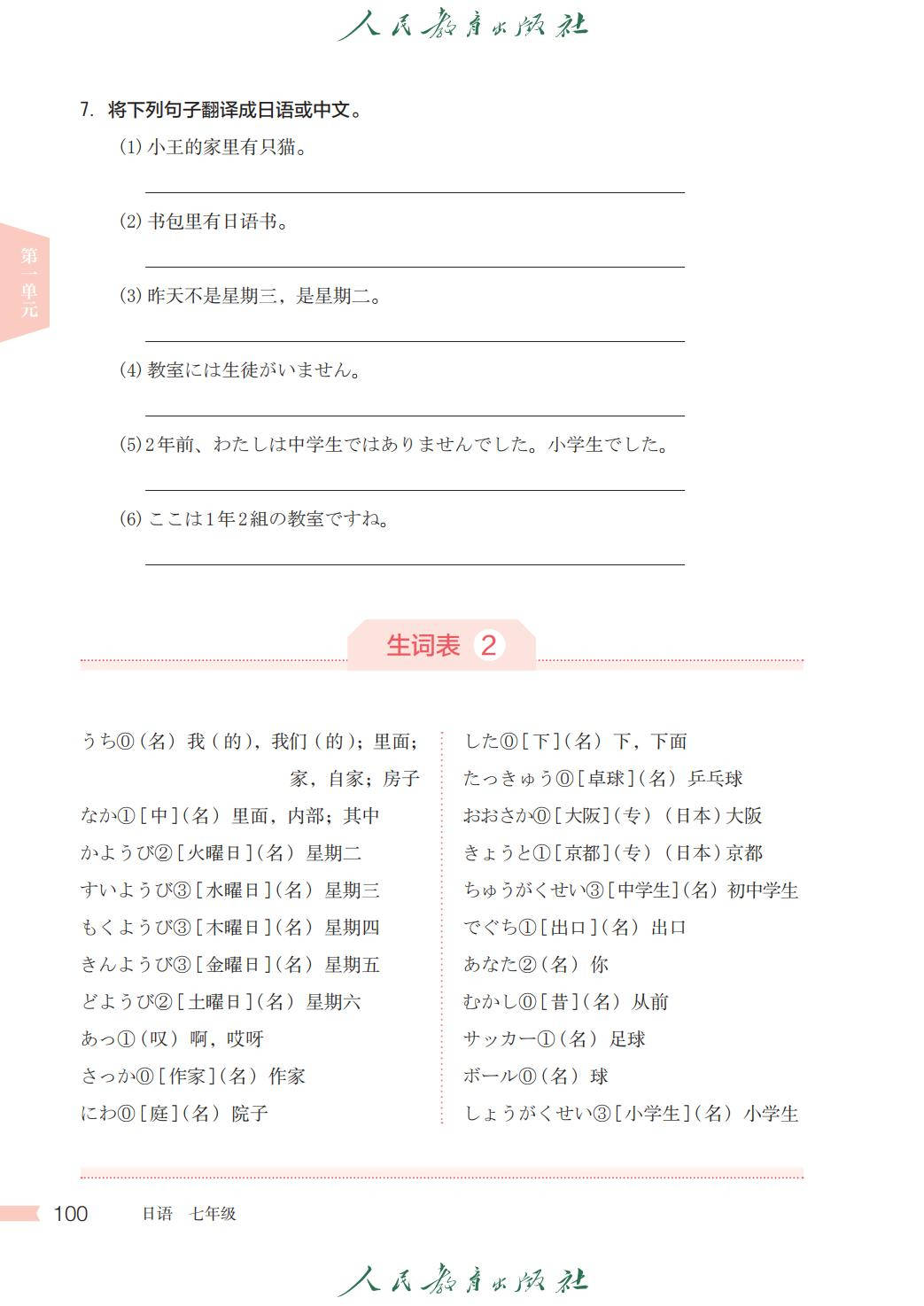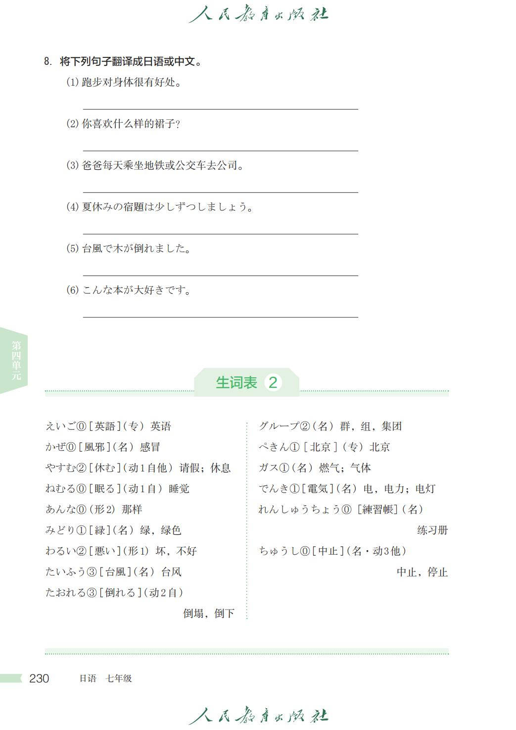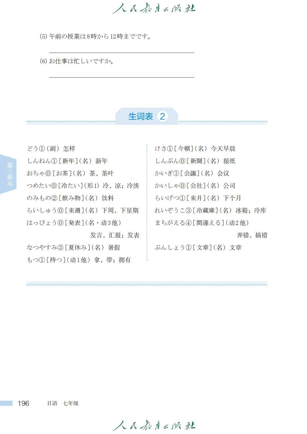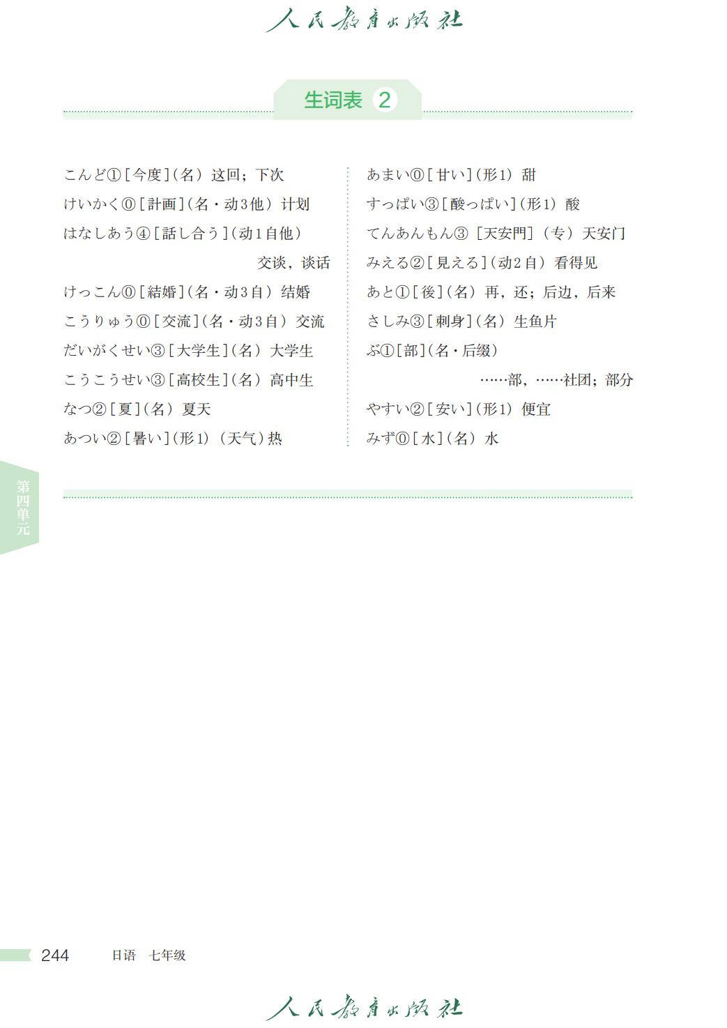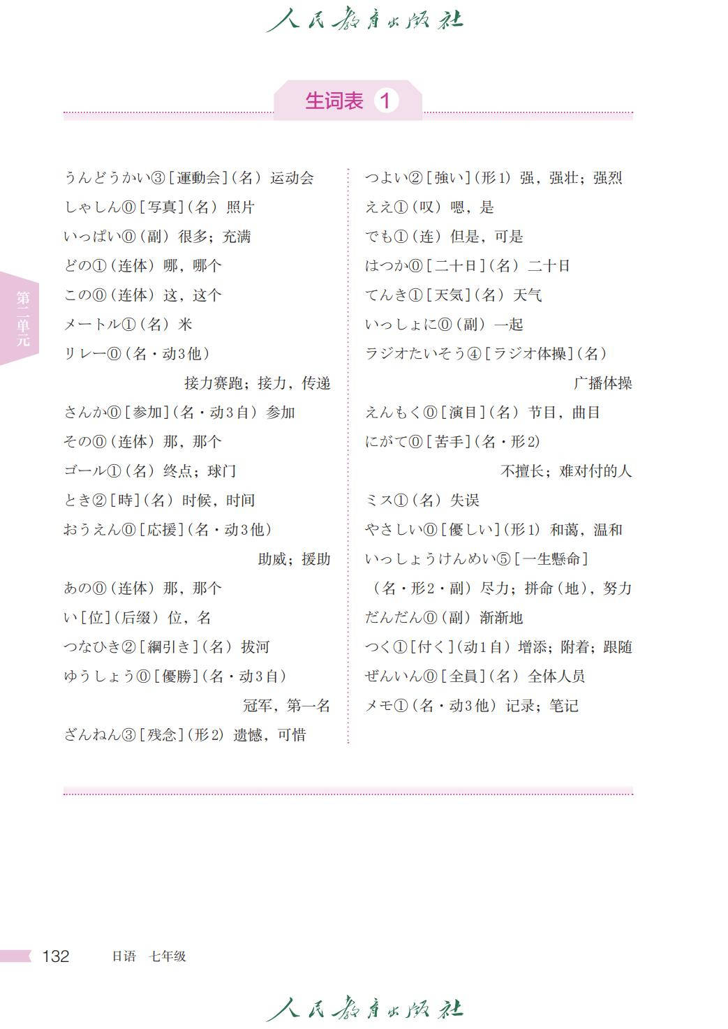 《2026春季人教版七年级日语全一册电子课本(新教材)》就为您介绍到这里,资源来源于网络,仅为学习交流之目的进行分享,其版权均归原出版社及作者所有。