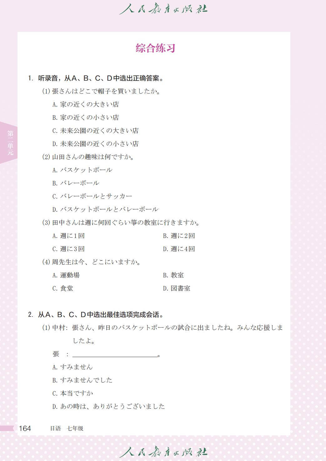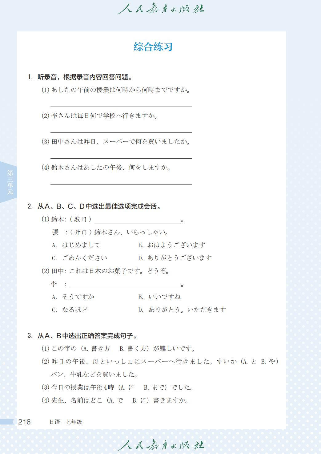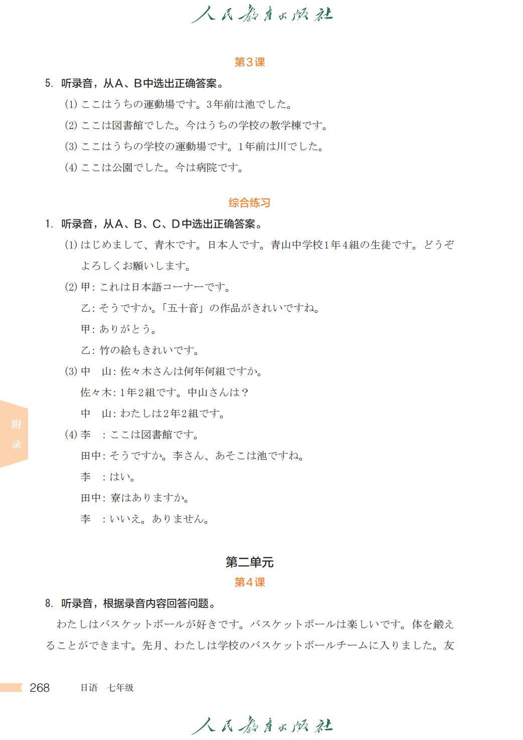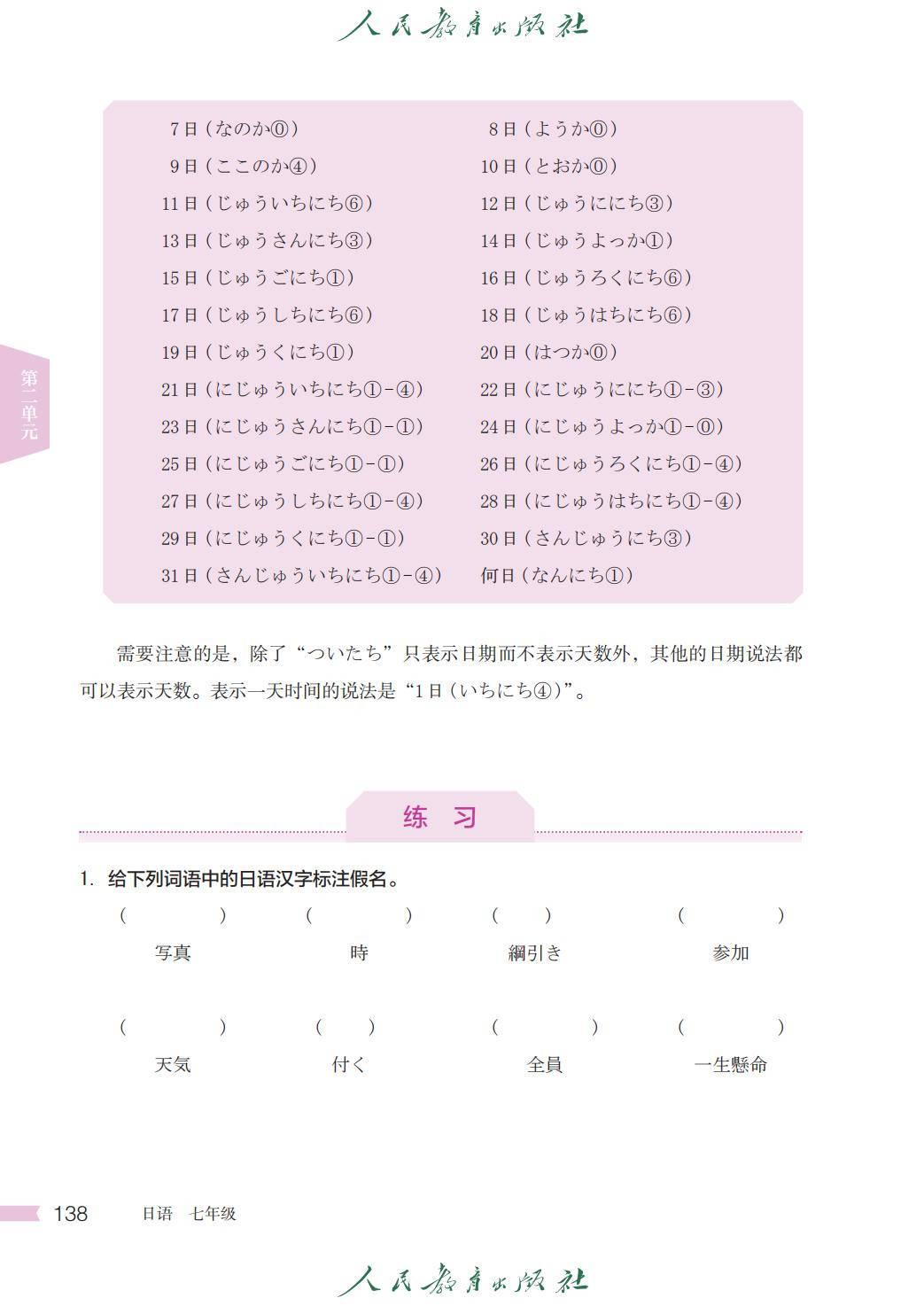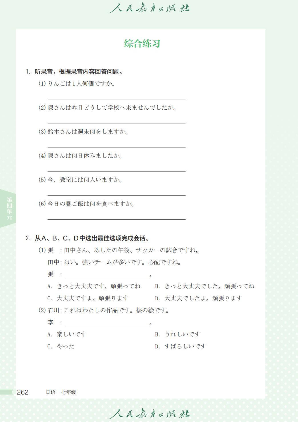 《2026春季人教版七年级日语全一册电子课本(新教材)》就为您介绍到这里,资源来源于网络,仅为学习交流之目的进行分享,其版权均归原出版社及作者所有。