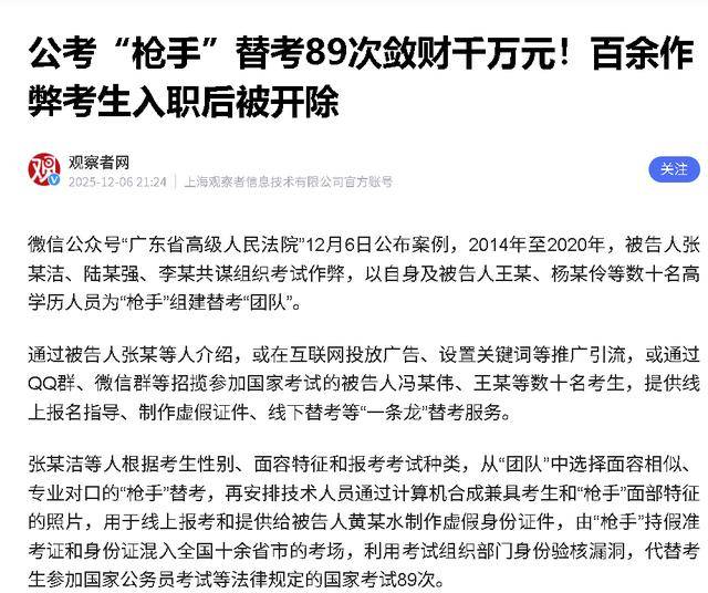 这起案件已经给所有想走捷径的人打了个样。作弊不仅仅是堵别人路,也是给自己埋雷。哪怕当下侥幸成功,迟早会东窗事发,所有参与其中的人都难逃清算。