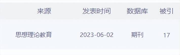 大家可以看图1,闵超引用量最大的是在“思想理论教育”期刊上发表的学术论文《思想政治教育在人的现代化进程中的功能及其实现 》引用次数为16次。而同一期刊,同一期,同一主题类型的学术论文有两篇,除了闵超老师的另外一篇的引用量恰好是17次,比闵超老师多一次。