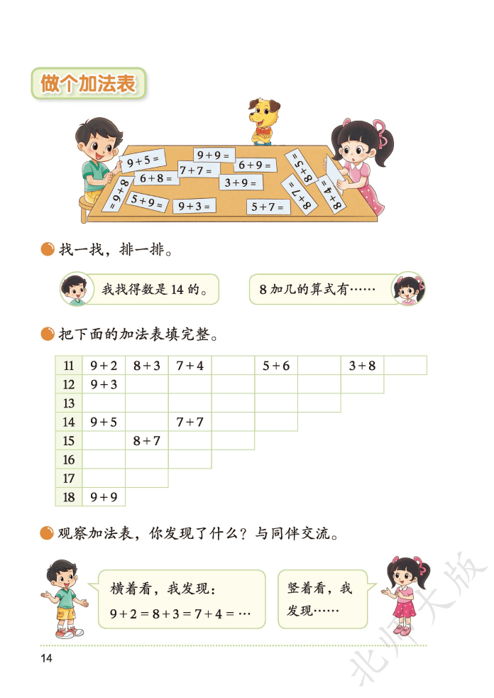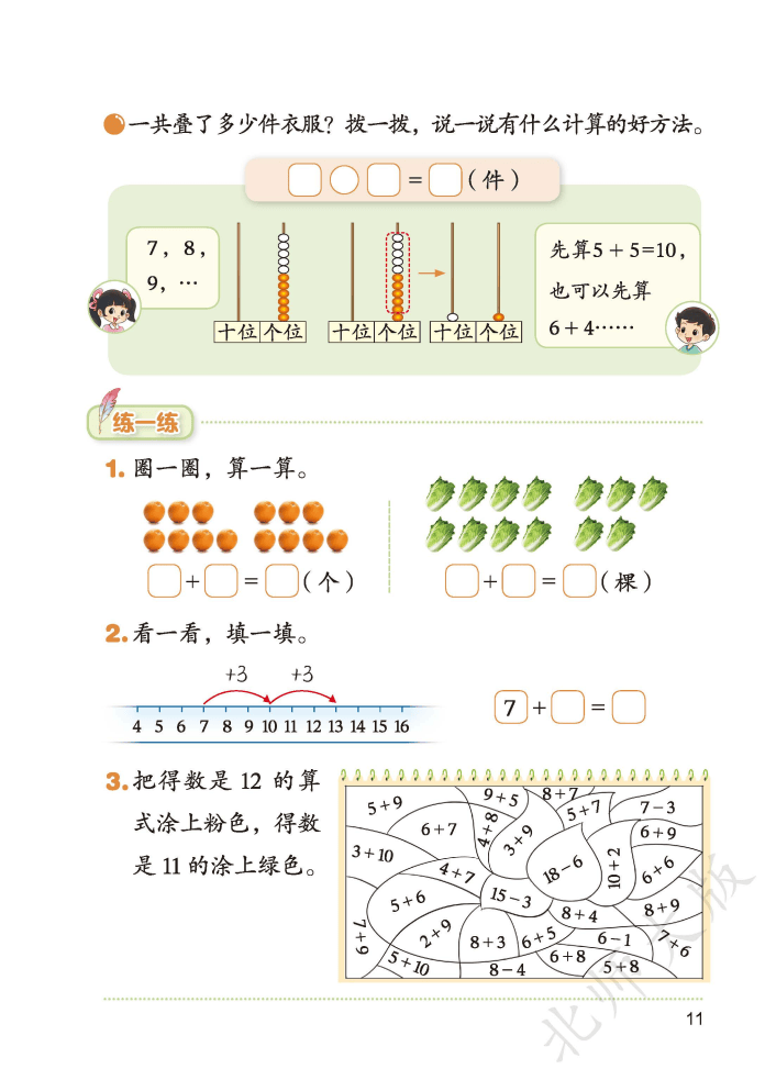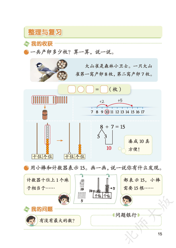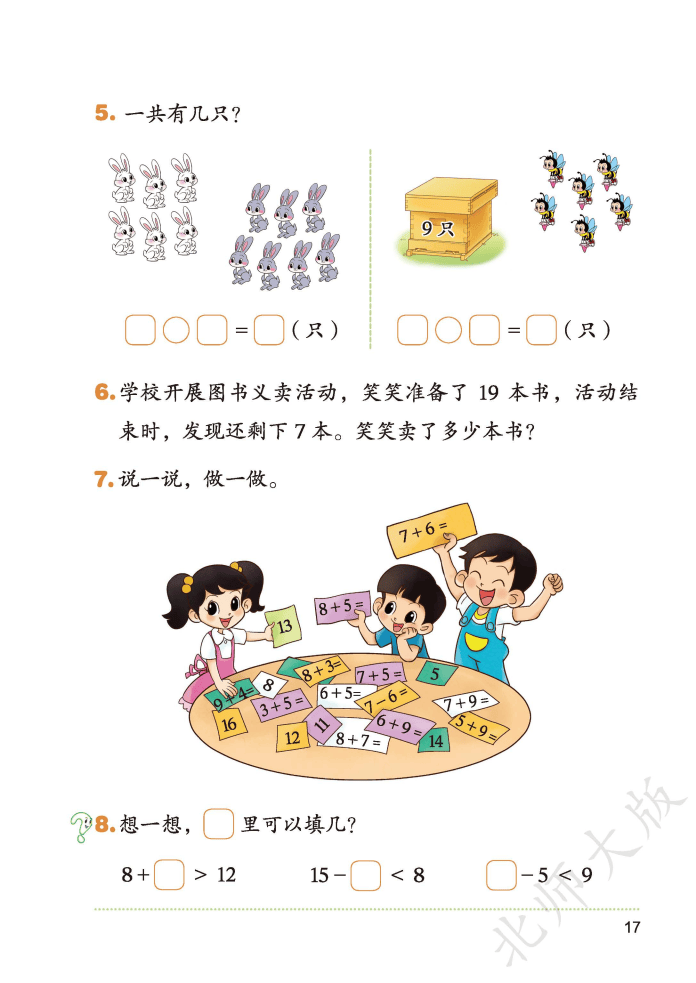 家有一年级萌娃的家长看过来!2026 春北师大版数学下册新教材重磅升级,完全摸准了低龄孩子 “好奇好动、具象思维为主” 的特点,把数学知识变成了孩子爱学的 “游戏课”。新教材优化了内容结构,不仅将原有的 “加与减” 拆分为 “20 以内数与加法”“20 以内数与减法” 两个单元,还把难度较高的 100 以内进位、退位减法后移到二年级,减缓学习节奏,让孩子扎实掌握基础。课本里全是卡通情境和动手任务:用 “1 捆小棒 + 8 根” 直观理解数的组成,通过计数器建立数位概念,就连 20 以内退位减法都配了 “捉迷藏” 这样的生活场景,让抽象的计算变得看得见、摸得着,彻底告别 “数手指” 的烦恼。