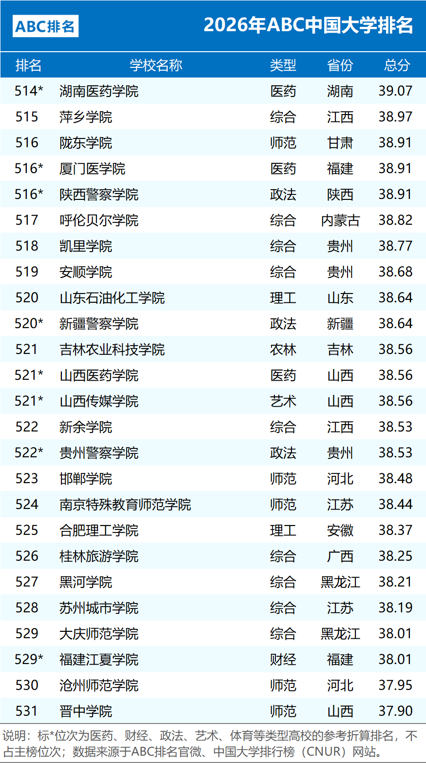 ABC中国大学排名由ABC咨询机构独家编制,旗下中国大学排行榜(CNUR)网站发布